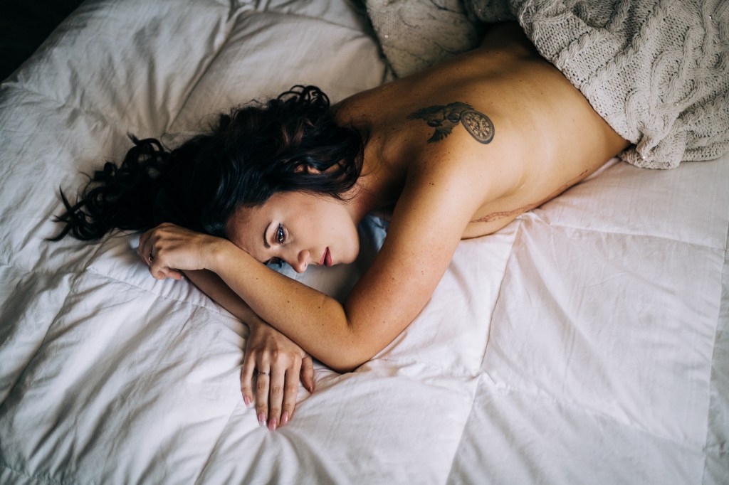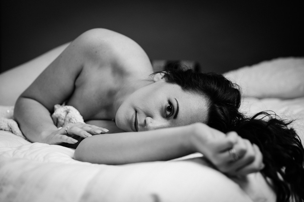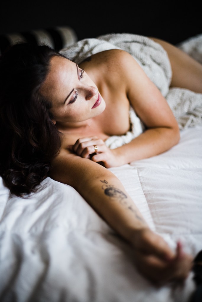 As for style, we started this shoot early enough that there wasn’t really enough light coming into the windows at the studio for natural light so we started with studio lighting. Once the light got better we switched to shooting strictly with the light coming in through the window. Both look good but they do have a very different feel. Studio lighting gives it a magazine look. Just as beautiful and sexy, but more polished. Window light is soft and beautiful and gives a more organic feel. Here are a few example of both.